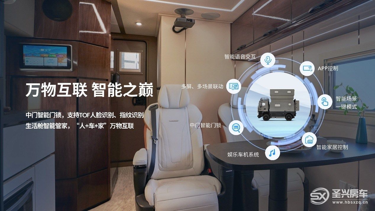 實現(xiàn)智能交互,專屬貼身管家:從中門進入生活艙的方式也極具科技感,智能門鎖支持TOF人臉識別和指紋識別;智能管家可將人、車、家萬物互聯(lián),通過觸控屏或語音可實現(xiàn)控制車內(nèi)柴暖、空調(diào)、燈光,以及查看水電量,成為提升旅程舒適度的“利器”,尊享品質(zhì)生活。