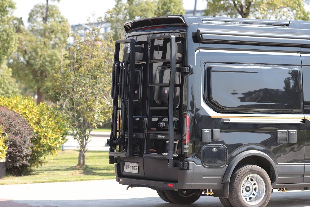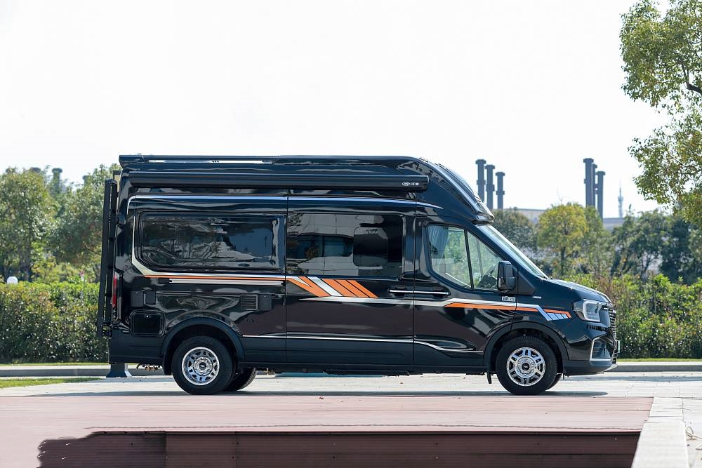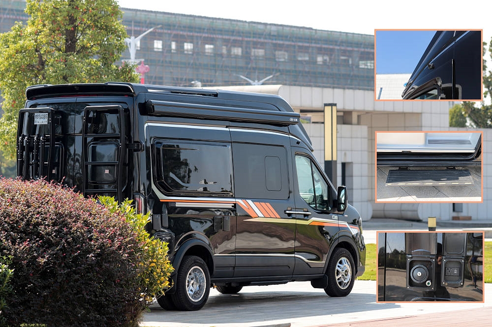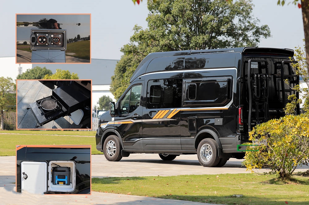 車外配有電動風(fēng)感帶支撐腿遮陽篷、中門上車電動踏步、480W太陽能充電板、車前頂行駐一體多功能專用照明燈、車尾行駐一體多功能專用照明燈、外接用水快插花灑、外置抽拉柴油灶(高原版) 、三合一充電系統(tǒng)等貼心裝備,讓你輕松享受旅居生活。