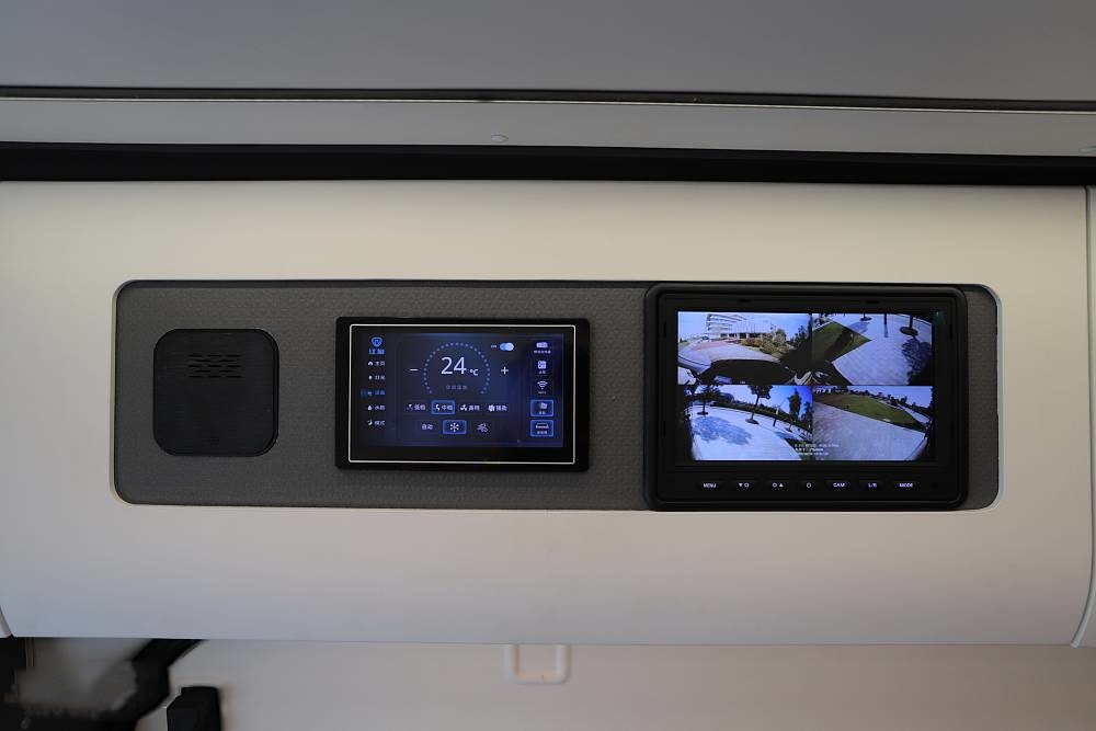 電路電器方面標(biāo)配了48V 205Ah鋰電池(10度電)、3000W逆變器充逆變一體機、7英寸觸控屏集成控制系統(tǒng)、三合一充電系統(tǒng);水路方面配備清水箱206L(室內(nèi)100L+底盤106L)、50L污水箱、德國韋巴斯特燃油熱水暖風(fēng)系統(tǒng)行駐車熱水系統(tǒng)(進口高原版燃油加熱器)等配置。