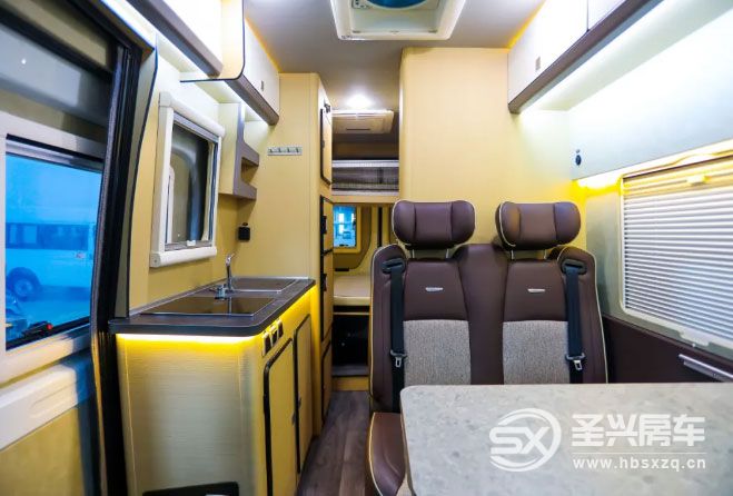 為達到環保輕量化的要求,內部采用的是進口板材和E0級環保材料,安全環保還耐火阻燃防水。后部車窗全部采用雙層PMMA亞克力中空帶遮陽和隱私拉簾防冷凝水組合窗,能夠很好的應對各種環境。