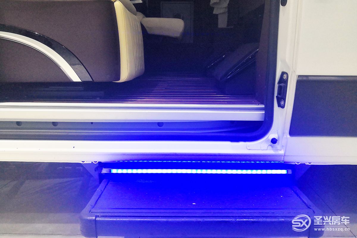 拉開滑動門,我們可以看到中門位置的電動臺階和氛圍燈,儀式感不錯。