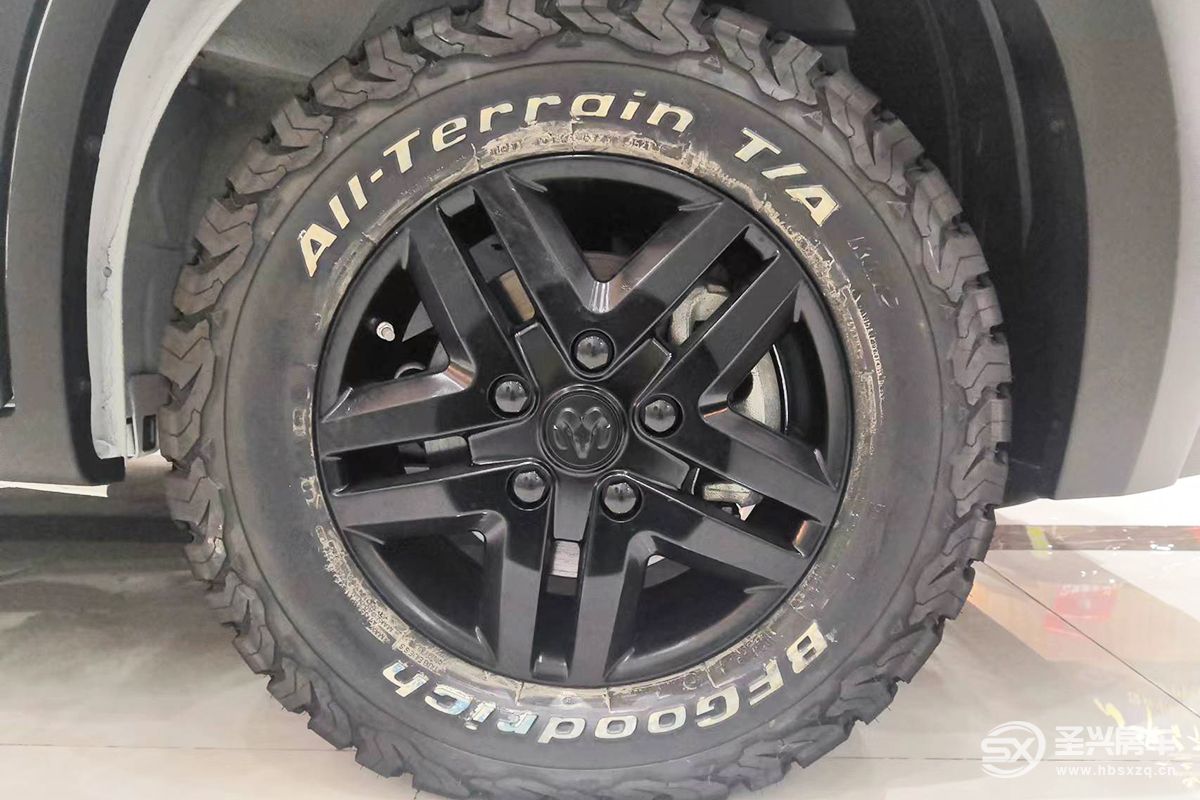 原廠銀色輪圈已經(jīng)噴涂成了黑色,并且四條輪胎選擇了越野胎,道奇公羊的接近角、離去角分別為26.7、26.8度,兼顧一定通過性。