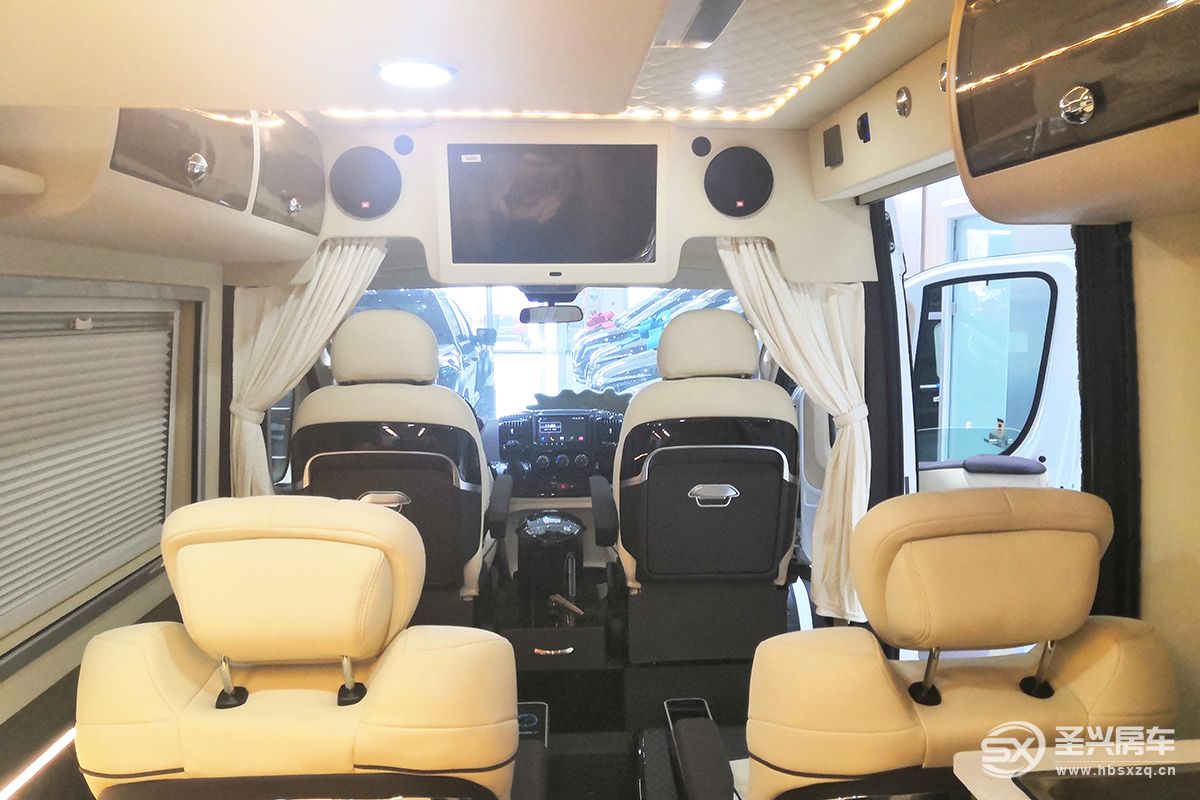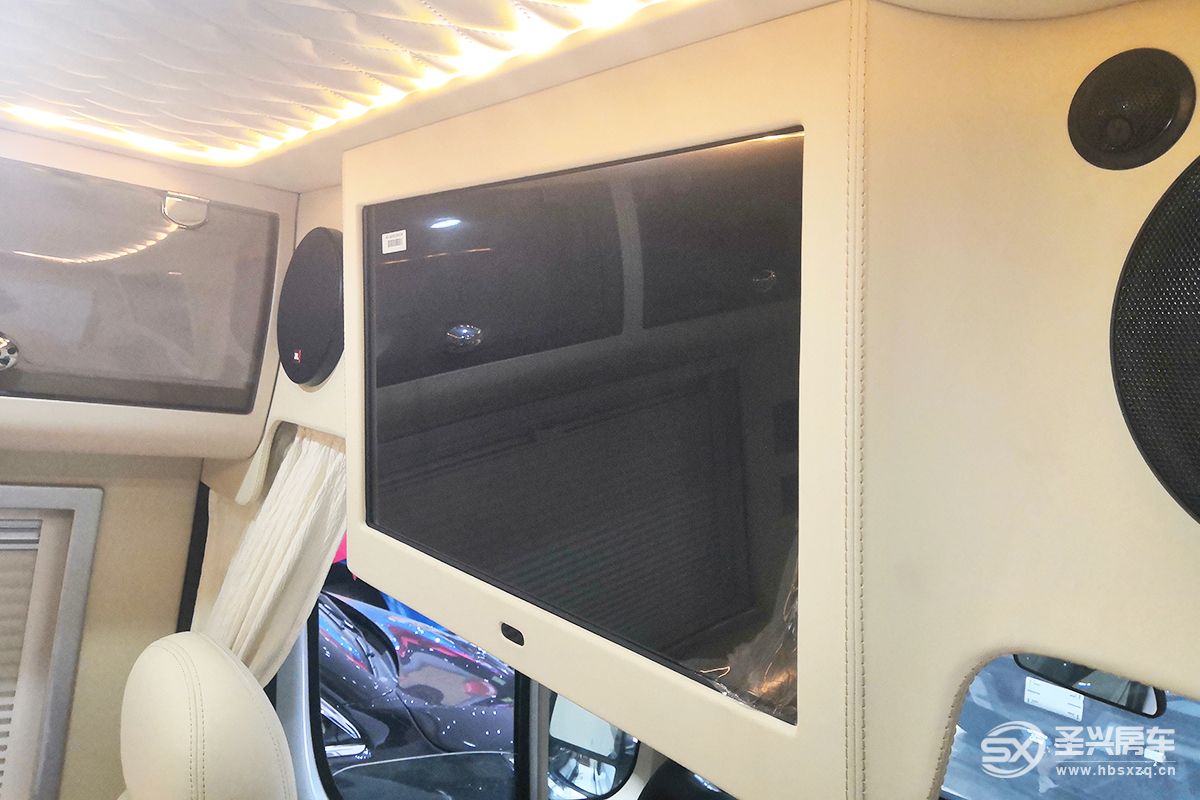 會客區(qū)主要娛樂設(shè)施是前方的24英寸吸頂電視,音頻將通過兩側(cè)JBL音響+功放系統(tǒng)輸出,如果用戶對音質(zhì)有更高需求,還可以選裝哈曼卡頓音響+功放系統(tǒng)。