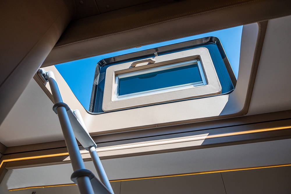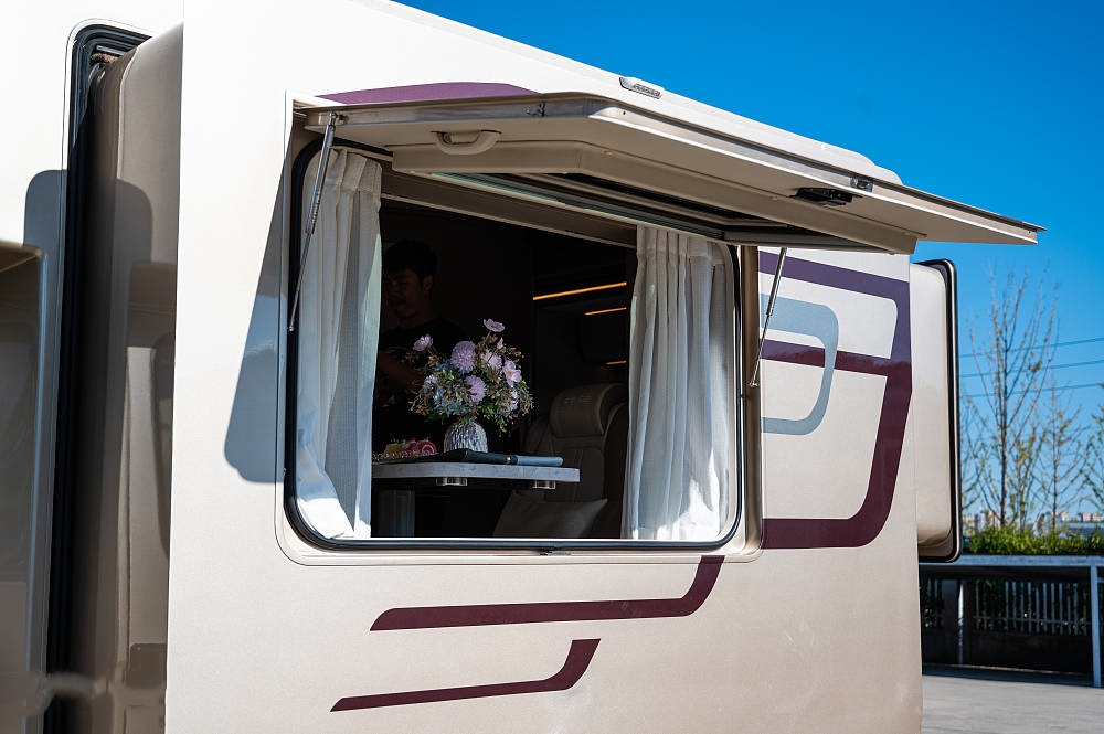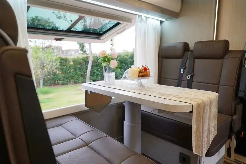 結構創新不止于表面,源于對創新不斷探索,在常規側拓展結構中內嵌大型上掀式觀景窗,為會客區寬闊的視野和充足的陽光。筆者親身體驗過后,毫不夸張地說真的令我心曠神怡,在戶外駐停時,一邊欣賞秋日美景,一邊與家人朋友閑聊,享受午后悠閑時光。