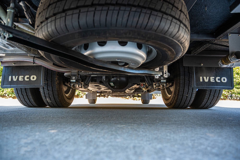 依維柯歐勝6.5噸大承載房車專用底盤采用非承載式車身結構,由C形截面的高強度鋼制成,并配備一體式后橋,確保車輛具有超長的使用壽命。前懸掛采用高性能的四連桿結構,能夠有效地吸收路面沖擊和震動,從而提高車輛的穩定性和操控性。而后懸掛采用扭力桿式結構,提供更大的軸荷和載重能力,滿足不同路況和載荷需求,是房車領域備受信賴的多功能底盤。