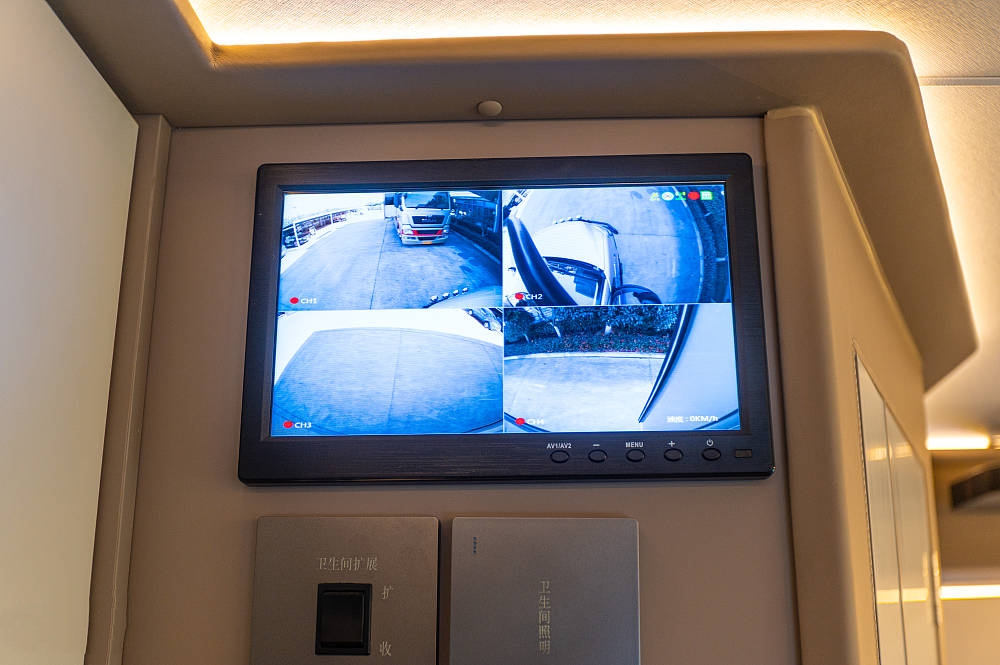 車身四周配有四路監控系統,行車時駕駛員可以實時監控車輛的周圍環境,提高行車安全,避免盲區事故;駐車或離車時可以遠程查看車內外的視頻畫面,方便車主隨時了解車輛的狀態,防止盜竊或損壞