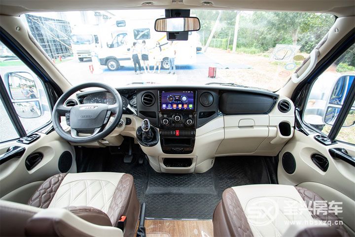 駕駛艙保留了依維柯原來的樣式沒有過多的進行改裝,頗具科技風的設計感和卓越的配置與上裝部分相得益彰。3.0T的柴油發動機與8AT手動變速箱提供了強勁動力的同時,在穩定性上表現更是讓人驚艷。