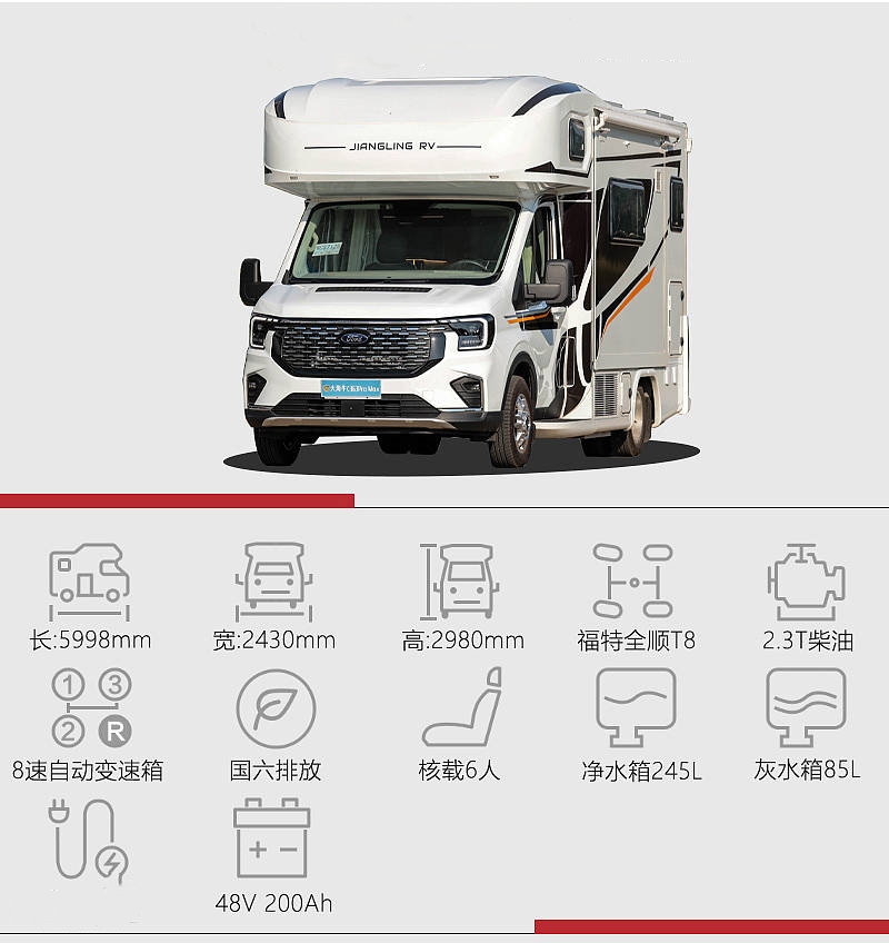 江旅又為我們帶來了一款令人眼前一亮的新作——江鈴福特Pro Max,采用了全新首發的福特新一代全面升級的優越性能以及舒暢的房車專用T8底盤。