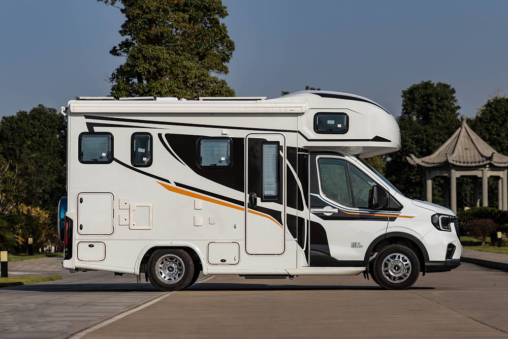 最新的福特全順T8底盤基于福特全球輕客專屬的擎天架構打造,具有高效、百變、智慧三大核心基因,承載能力也達到了輕客中的最高水平,最大載重質量為5.25噸,底盤68處使用硼鋼車體加固,各項測試標準、腐蝕標準均高于行業標準,保證了車身的強度和耐久性,可以說是是目前市場上最先進的房車底盤之一。