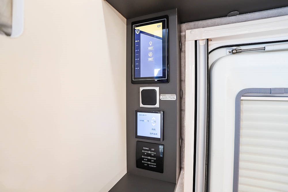48V KME空調和集成式觸控面板及控制器也被放置在這一區域,集成式觸控面板可統一控制車廂燈光、設備、水路、電器以及加熱器等設備,直觀又方便。