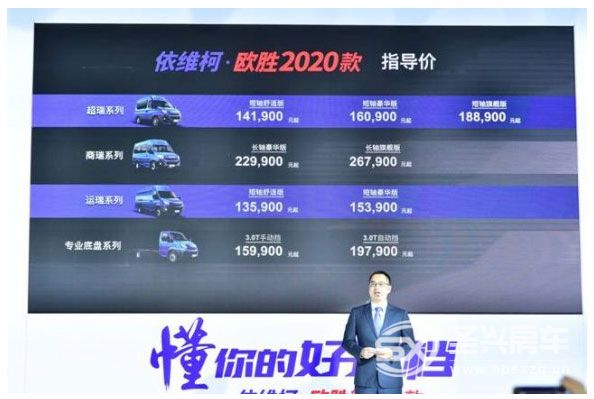 南京依維柯于2019年9月5日成都國際車展上震撼推出了依維柯歐勝2020款。這一爆款新品為用戶量身打造,刷新用戶期待,標(biāo)配高端,車型豐富,極具品價比。超瑞短軸舒適版141,900元起;商瑞長軸豪華版229,900元起;運(yùn)瑞短軸舒適版135,900元起;專業(yè)底盤159,900元起,更有首批車主“搶訂禮”和車展現(xiàn)場訂車六重定制禮包。懂用戶所想,供用戶所需,“懂你的好搭檔”依維柯歐勝2020款即刻開啟定制。