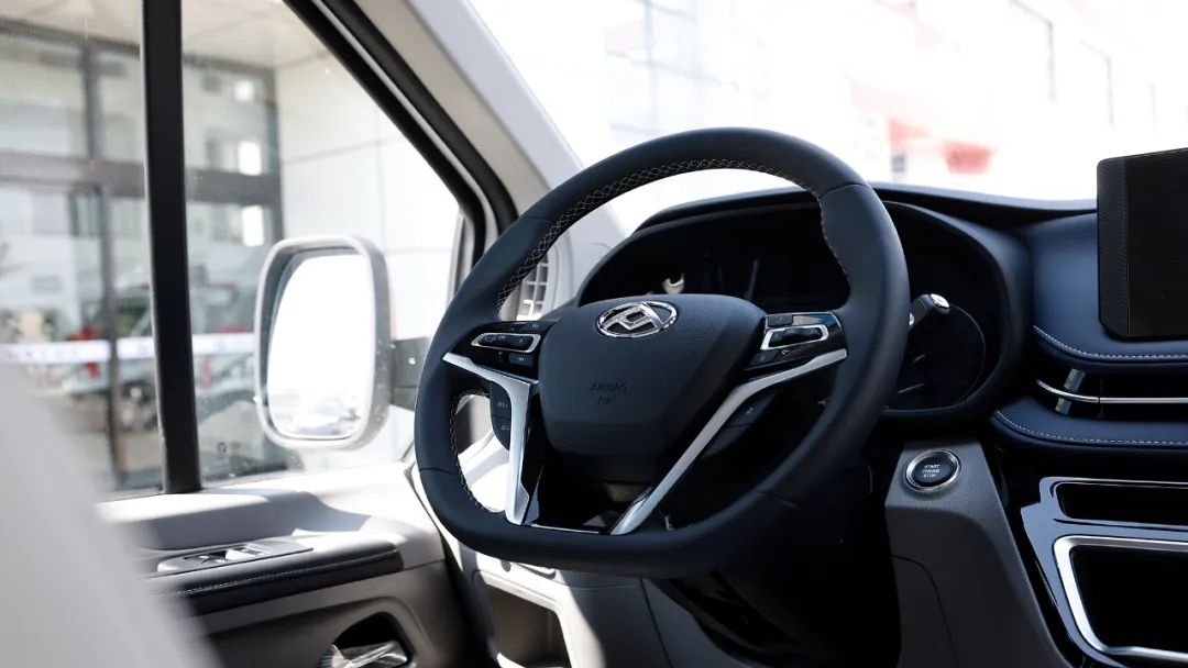 新車配備了多功能方向盤,仿皮包覆,盤幅大小以及粗細(xì)程度適中,上手很快。方向盤上的多功能按鍵體驗下來,比較緊致,沒有那種松松垮垮的感覺。這款車我們也看到了,它采用的是懷擋的形式,所以傳統(tǒng)換擋桿的的位置就可以預(yù)留出比較多的儲物空間了,另外新車還配備了換擋撥片,在一款輕客上能看到這個功能,確實也是不多見的。