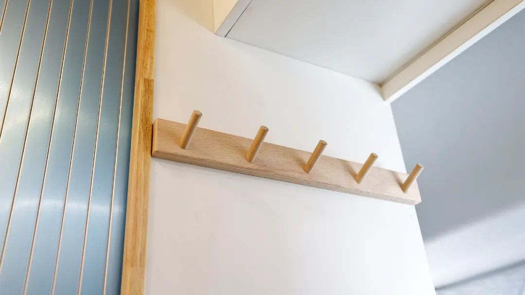 衛(wèi)生間外側(cè)也安裝了掛衣鉤,用于懸掛長款衣物。