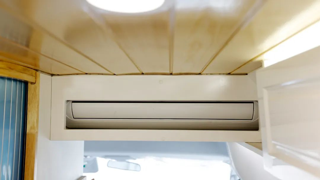 駕駛室偏后位置配備了一款12V直流空調(diào),出風(fēng)口風(fēng)向直接對著后方生活區(qū),由于空調(diào)出風(fēng)口距離后方床位還有一定的距離,用戶不用擔(dān)心空調(diào)直吹帶來的不適。