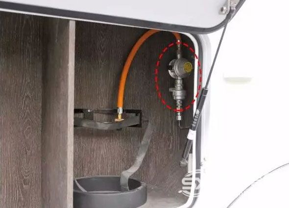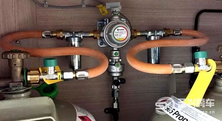 對于這個氣壓調節器我們平時在購買房車的時候很少會注意到,即便是使用房車時也不會在意。房車內一般會配備一個或兩個氣罐,如果是兩個氣罐的話需要適配雙頭的氣壓調節器,它的優點在于當其中一個氣罐內的燃氣即將耗盡,它會通過這個裝置自動從空瓶切換到另外的滿罐燃氣,不用擔心在做飯的中途燃氣終止,這是一個比較人性化的小功能。