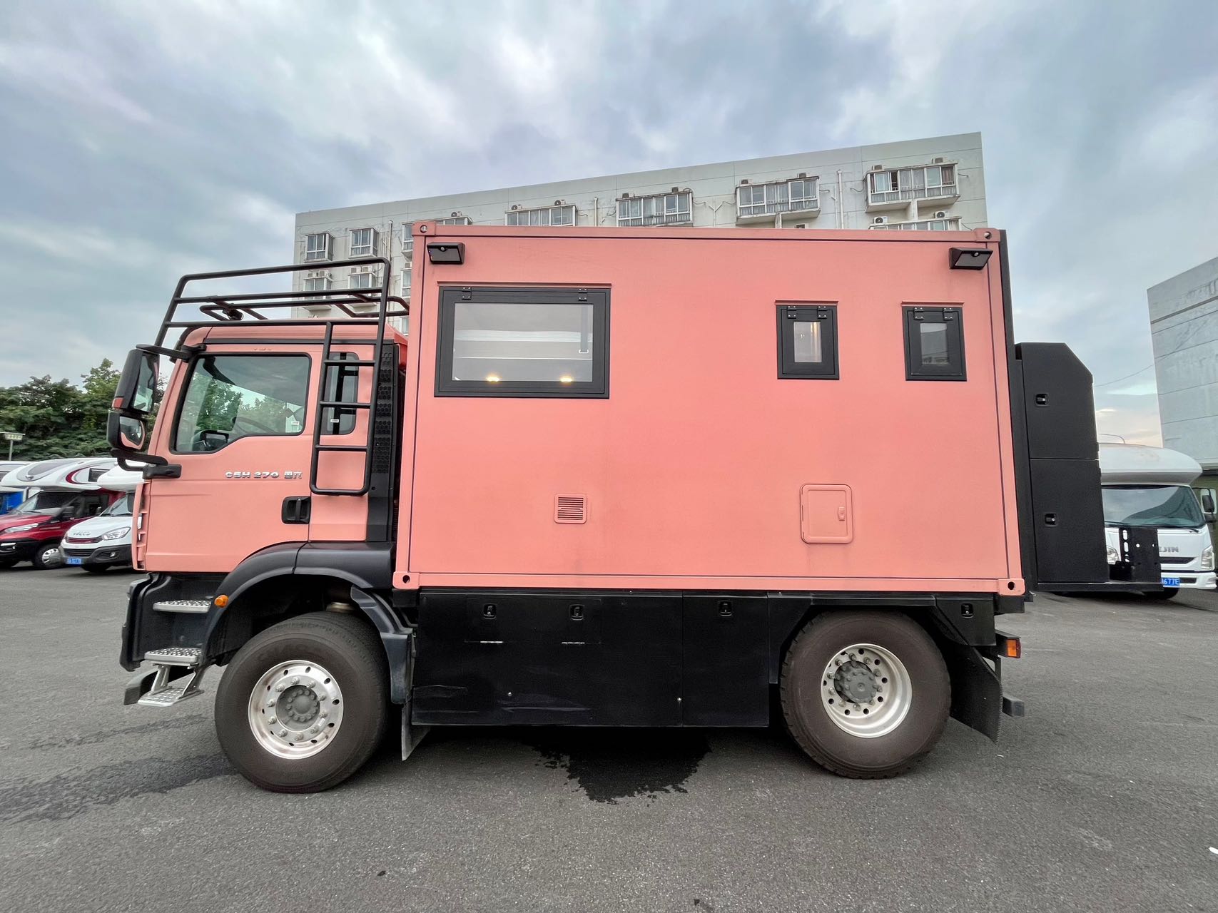 【水電配置】:2個3000W逆變器,24V800Ah鋰電池,1980W太陽能,500L清水箱,100L灰水箱