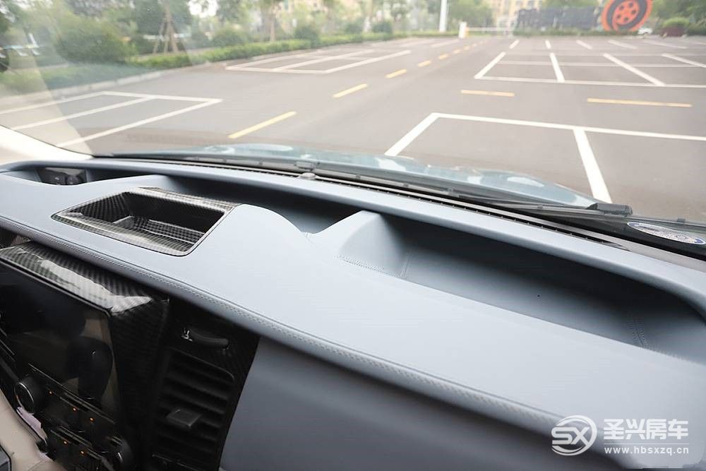 駕駛室部分進行了全方位的皮質(zhì)軟包和碳纖維水轉(zhuǎn)印飾板裝飾,看上去豪華舒適同時與生活區(qū)風(fēng)格統(tǒng)一。