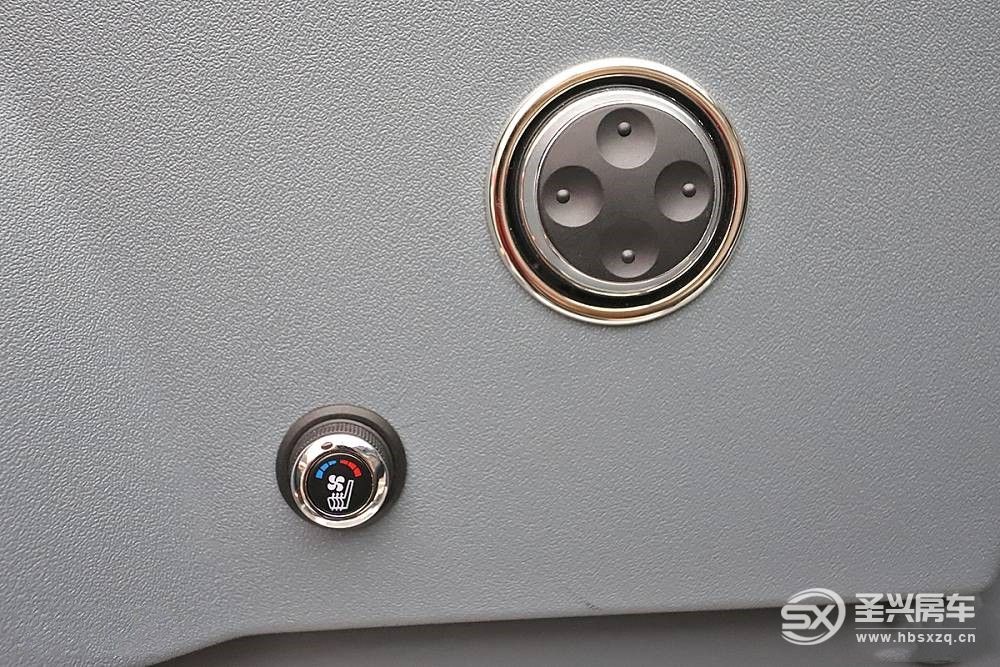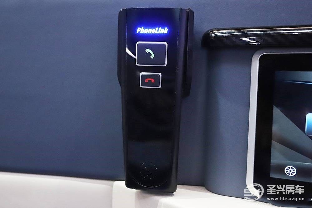 生活區(qū)與駕駛室通過內(nèi)置電話溝通交流,旁邊的操作屏幕可控制車內(nèi)全部燈光、隱私簾、燃油加熱器、空調(diào)風(fēng)量/溫度及顯示水量/電量信息。