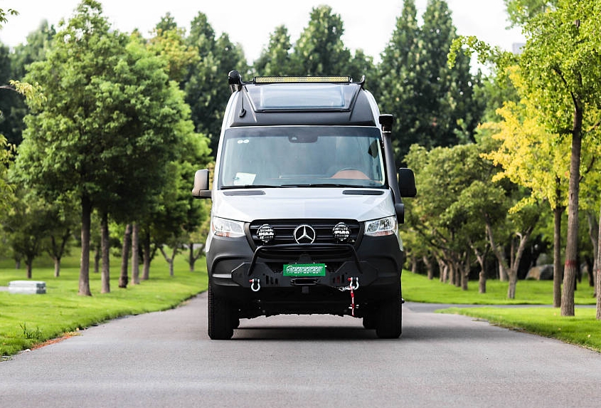 奔馳斯賓特(Sprinter) 4X4 B型房車在外觀上進行了全副武裝,每一處改裝件都能發(fā)揮重要作用。首先奔馳斯賓特底盤原廠狀態(tài)就能達到很好的離地間隙,如果后期改裝減振器、前后包圍,它的最小離地間隙、接近角、離去角將有更顯著的提升。