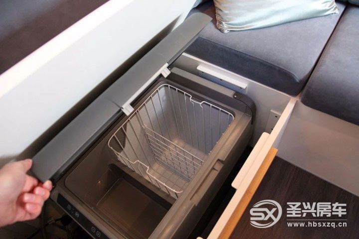 環(huán)形沙發(fā)內(nèi)集成了優(yōu)質(zhì)的絕緣冷藏箱。65L容量的冷藏箱所提供的存儲(chǔ)空間足以讓4個(gè)人度過(guò)更長(zhǎng)時(shí)間。冷藏箱耗電量非常低,無(wú)論外面的溫度如何,均能夠長(zhǎng)期存儲(chǔ)冷凍的供應(yīng)品。